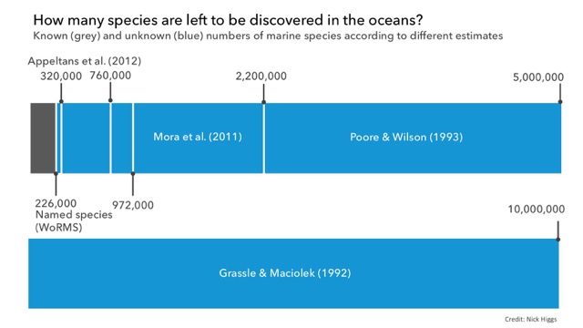 So there is still a case to be made that the deep-sea species richness may actually be closer to some of the larger estimates proposed, but ultimately only more detailed analyses that account for these biases will be able to refine these estimates. Until then we cannot really claim to know how many species there are in the ocean.